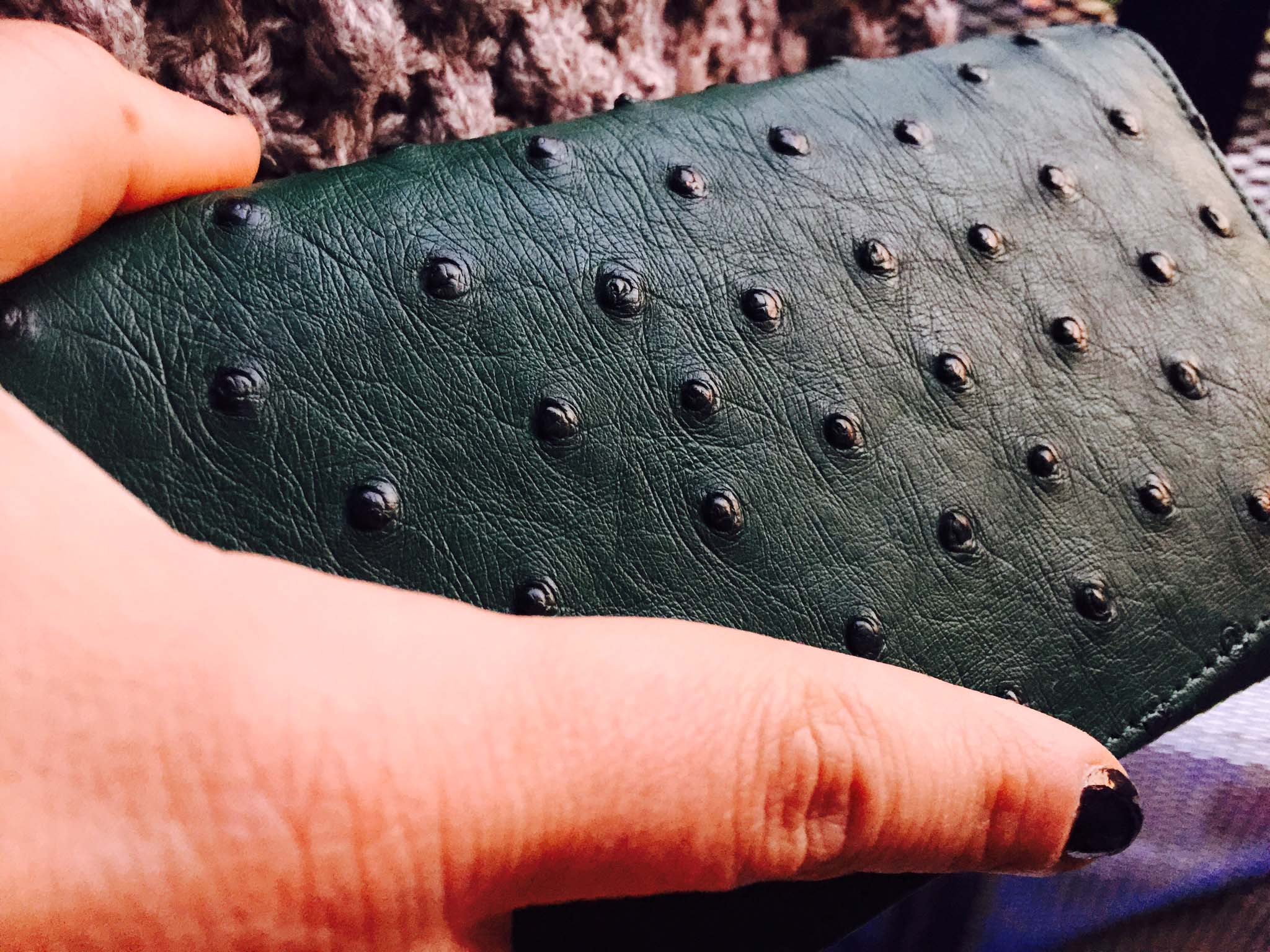 The Ostrich Matinee Trifold Purse is available in an exclusive seasonal range of colours from Pickett London at £425.
